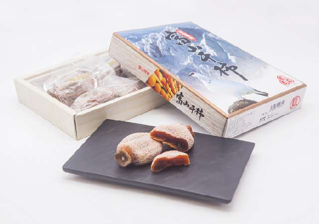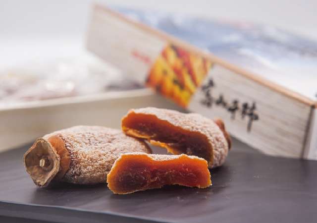 富山縣最著名的特產福蜜干柿,屬半乾燥柿餅,